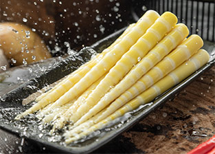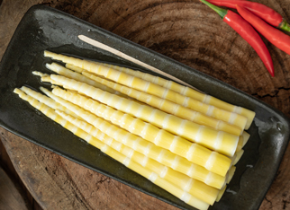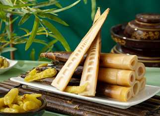 小竹笋制成菊花笋,涮火锅、汤锅,味尤佳。